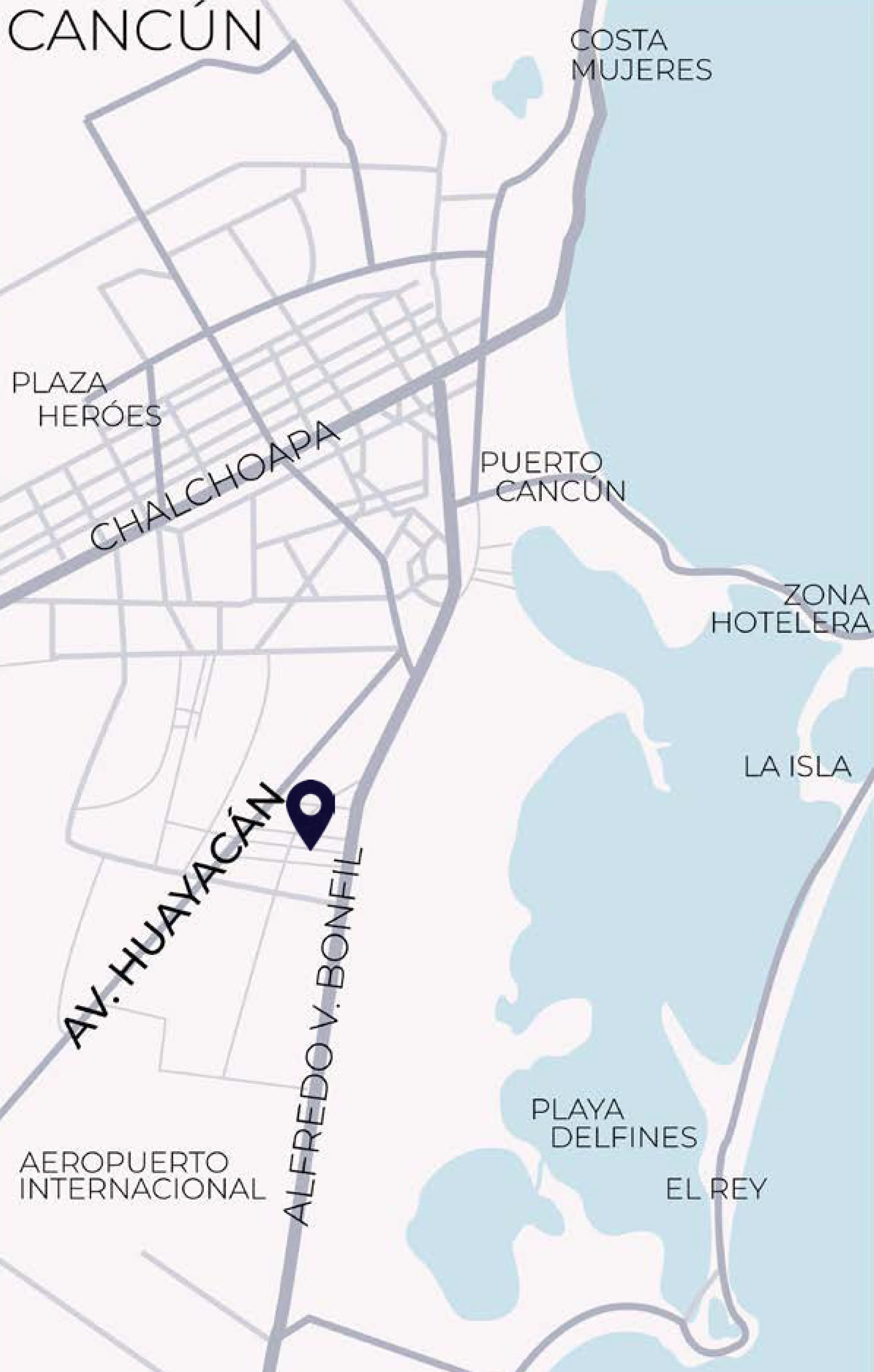 • A 7 km./15 min. aprox. del Centro de Cancún.